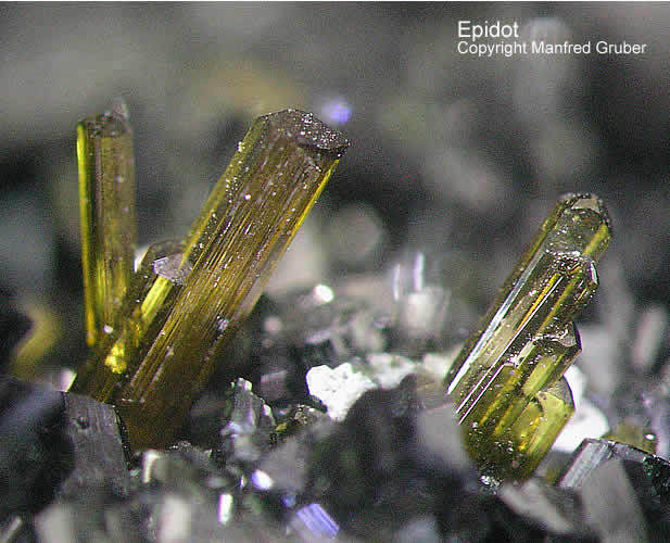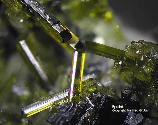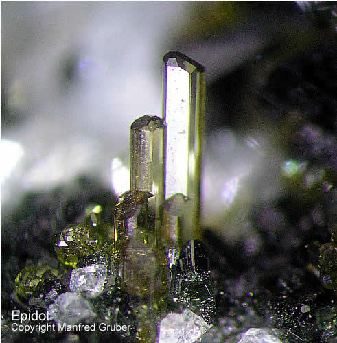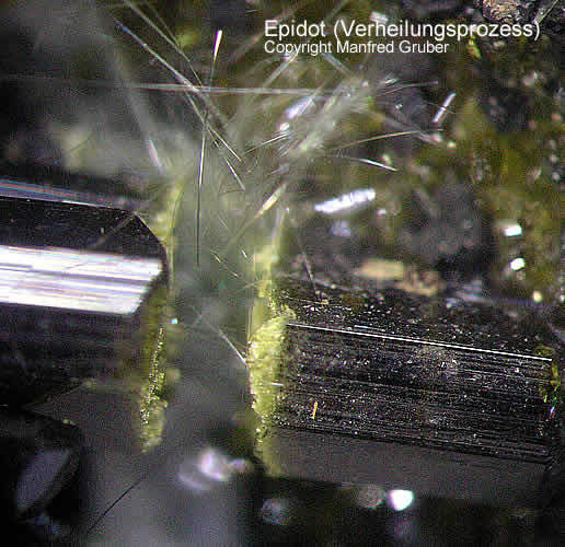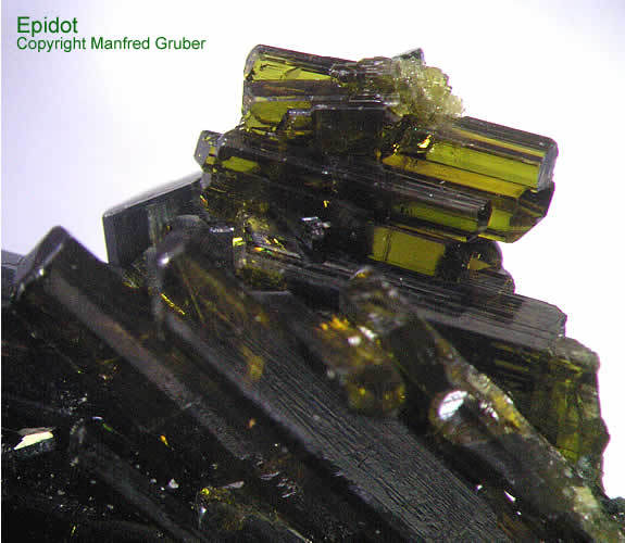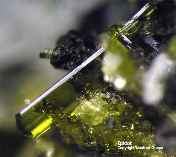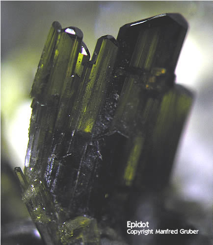 Galeriebilder - E (Epidot aus Kluftboden - Farbe gelblichgrün bis schwarzgrün, selten rötlich - Mohshärte 6 - 7)
