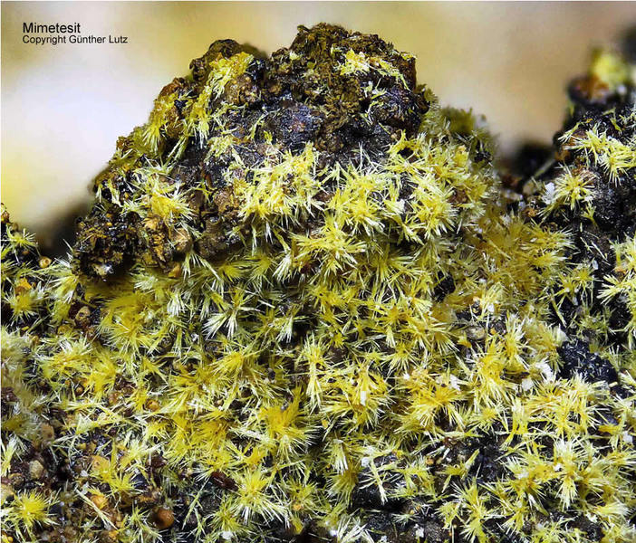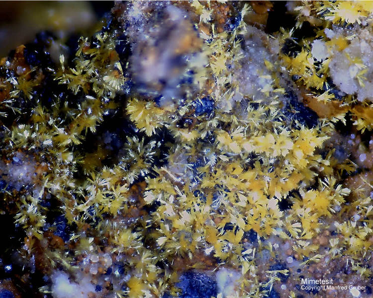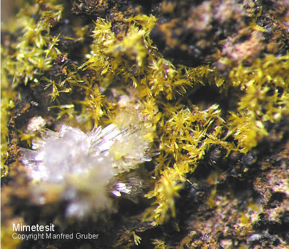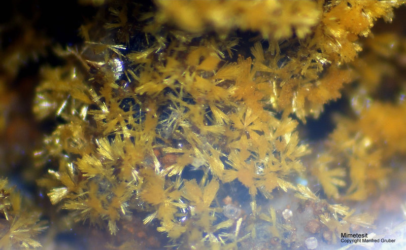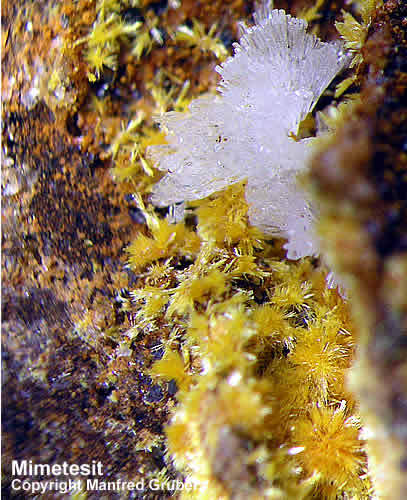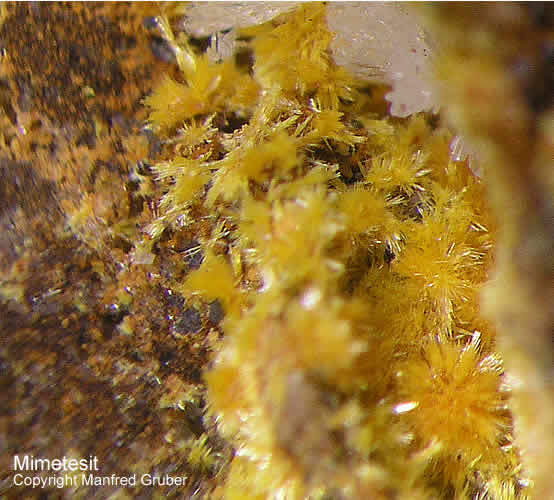 Galeriebilder - M (Mimetesit - Farbe honiggelb, grünlich, grau, farblos, gelbbraun, gelborange, weiß - Mohshärte 3.5 - 4)